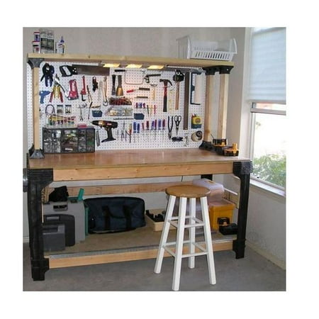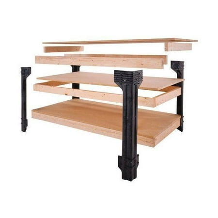 Made of durable, maintenance-free structural resinThe WorkBench legs and ShelfLinks are built to last 2x4s not includedWorkbench and ShelfLinks support spans up to 8-feet (2.4 m) and 1000 pounds (400 kg) per shelf.Customizable to your needs, make your DIY WorkBench any size between 2.8 feet long and up to 4 feet wide, and stain, paint, or finish your wood as you desire.All necessary hardware and easy-to-follow instructions included.Simple assembly is required.Lumber and tools not included.Only straight, 90° cuts are required, with no miters or angles.Kit includes: 4 black Work Bench legs, 6 black ShelfLinks, hardware pack To make your custom unit.You will need: 2×4’s and plywood or particle board (amount determined by preferred size of your workbench, lumber guide included), a screwdriver (power screwdriver recommended), a tape measure and saw if lumber is not already cut to size WorkBench legs stand 36 inches high (90cm).Single Shelf Link measures 5″x 3″x15.5″ Assembled unit dimensions depend on customized design
