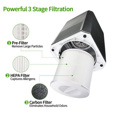 This Morpilot High Efficiency Air Purifier will help clean the air you breathe. It constantly absorbs pollutants and captures up to 99.97% of air particles less than 0.3 microns, including bacteria, allergens, fungi, pollen, smoke, dandruff and dust. It can absorb volatile organic compounds, gases and odors, capture larger particles, and last for three months to obtain the best performance. This black air purifier has a quiet operation. It can circulate indoor air five times an hour. It has five air cleanliness levels and turbine cleanliness settings. which can purify 180 square meters of air in an hour. If you’re looking for a purifier to help your home’s air quality, Morpilot real high-efficiency air purifier will be done.Features:Input voltage: 100V~240V 50/60Hz 17W,Working voltage: DC24. Panel touch screen operation. Material: ABS case sprayed with black matte oilThe product uses DC brushless motor with long life, low power consumption and low noise;CDAR reaches 180M3/H, which is 50% higher than other volumetric air cleaners, and four-layer filter.The adapter is certified by ETL, CE and CB, and the host product is certified by FCC and ROHS.SpecificationsMaterial: ABSDiameter:9 in W x 9 in D x 17 in HNoise Level:28dB, 40 dB, 50dBCADR (m³/h): 180 m³/HNet Weight: 2.6 lbs(1.2 kg)Color :BlackPackage Content:1 x Air Purifier1 x AC adapter plug1 x English Manual1 x Filter (In the air purifier )Please Note:Filter needs to be replaced every 3-6 months and please remove the plastic bag of the HEPA filter inside before starting running it. Replacement filter will be sold seperately