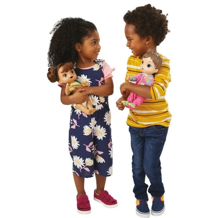 Baby Alive Mix My Medicine Baby Doll, Dinosaur Pajamas, Drinks and Wets, Doctor Accessories, Brown Hair Toy for Kids Ages 3 and UpMIX BABY?S MEDICINE ? Kids love playing ?doctor? and they?ll have so much fun mixing up doll medicine to make baby all betterINTERACTIVE THERMOMETER – When you use your baby doll?s thermometer, a picture will appear to show you what she needsMIX IT UP AND MAKE HER BETTER – Once you know what?s wrong with baby, choose one of the packets, add water, and squeeze to fill the dropper with doll medicine. Time to open wide, baby!CHANGE BABY?S DIAPER ? Baby?s thirsty! Give her some water from her cup. Uh-oh, baby?s wet! Time for a diaper change (additional diapers sold separately)