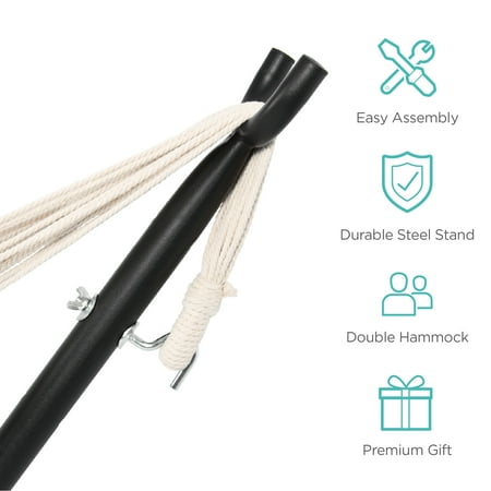 Best Choice Products provides you this modern Double Hammock with Steel Stand. Made of 100% cotton, this hammock is designed to keep you relaxed and comfortable in any outside area. It is capable of accommodate adults (as much as 450 lbs.) Allowing you and a pal to revel in sharing the hammock on a heat sunny day. For convenience and durability, it consists of a stand this is built of robust and all weather-resin steel. Saving you time and cash from having to purchase a stand one after the other. With the protected sporting case, you may without difficulty percent the hammock and take it everywhere you please with ease. Purchase today for a handy and cozy hammock that you may not find anywhere else!