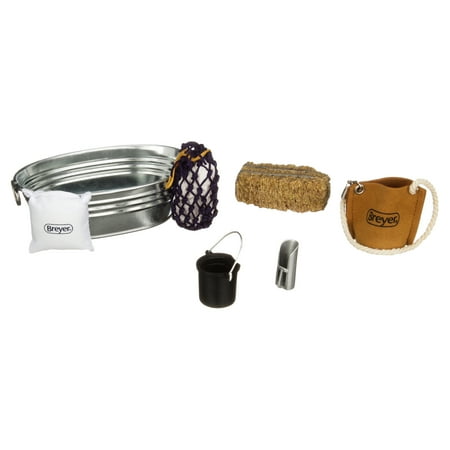 Keep your Breyer model horses fed and happy with this Stable Feeding Set.7-piece set includes aluminum water trough, hay bale and hay net, feed bucket, feedbag, bag of feed and feed scoop.Each item is authentically-styled to look just like the real thing!Items in this kit are sized for Breyer Traditional Series (1:9 scale) horses and 8” riders.Add to your model horse barn for the most realistic play experience!