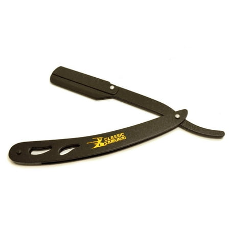 Classic Samurai CS-102 Matte Black Folding Straight Razor, Shavette with 100 Derby Premium Single Edge Razor Blades