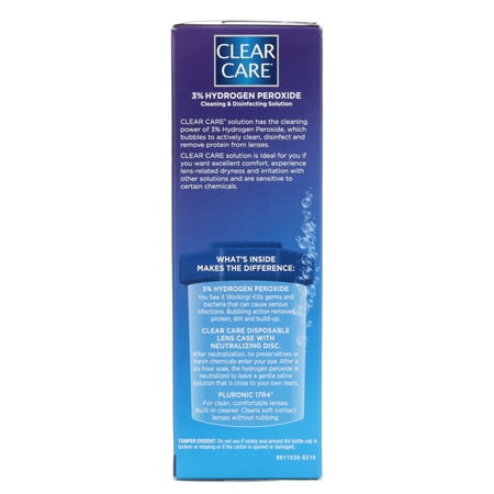 The #1 medical doctor encouraged peroxide logo Deep cleans, loosens dirt, and complements protein elimination with Triple Action Cleaning Includes a unique contact lens case for cleansing and disinfecting CLEAR CARE Cleaning & Disinfecting Solution uses the bubbling power of hydrogen peroxide to provide your lenses a few plenty-wished TLC. Our Triple Action Cleaning power makes lenses so clean, they sense like new, but without the preservatives located on your ordinary multi-cause answers. Disinfect your Lenses with 3% Hydrogen Peroxide CLEAR CARE touch cleansing answers use hydrogen peroxide to assist save you eye infections by using killing harmful germs and bacteria on contact lenses. They paintings with a special lens case to create a effervescent movement you could see that actively cleans and removes particles from your lenses so your lenses are clean and comfortable. CLEAR CARE is also preservative-free because of this no preservatives or chemical compounds from multi-purpose answers input your eyes. CLEAR CARE Contact Lens Case Included! So, what is with the cool little touch lens case? If you’ve got in no way used CLEAR CARE before, the lens case may look a little atypical. Here’s the way it works: The 2 lens baskets maintain your contacts in region, and the fill line at the case allows you operate just the right amount of solution on your lenses. The Platinum Disk inside turns on bubbles to clean your lenses via neutralizing the hydrogen peroxide into a gentle saline solution, similar to your own tears. How to apply CLEAR CARE Solution Just comply with these simple steps and you will be correct to use CLEAR CARE for your tender touch lenses: Wash, rinse, and dry your palms. Then, location your lenses in the hampers and rinse for 5 seconds with solution. Fill the case to the line with CLEAR CARE, placed the case and lid together, and tighten. Then, simply let your lenses soak overnight or for as a minimum 6 hours, then experience your newly smooth lenses! Red cap alert! The pink cap on CLEAR CARE touch cleaning solutions method you must in no way put CLEAR CARE or CLEAR CARE PLUS at once in or round your eyes. For instructions for RGP lenses, or greater records on proper eye care, go to our internet site. CLEAR CARE contact cleaning solutions and eye care products are available on-line at or in-keep at a Walmart near you! For a further bottle of CLEAR CARE at a incredible price, see our Twin Pack! Or, for an answer with HydraGlyde for extra moisture, attempt CLEAR CARE PLUS.