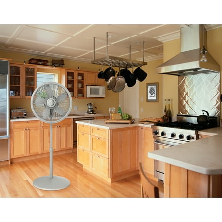 Lasko 18″ Stand 3-Speed Fan with Cyclone Grill, Model S18902, Gray:Quietly cools large spaces3 energy-efficient speedsPedestal fan easily tilts to direct air where neededAdjusts up to 54.5″ in heightWidespread oscillationSimple, no tools assembly for out-of-the-box convenienceConstruction: plastic1 year limited warrantyIdeal for homes, schools, libraries, hospitals, meeting rooms and any space where many people work or spend periods of timePortable, move it from room to room easilyETL listedCord length: 76 inchesFinish: gray