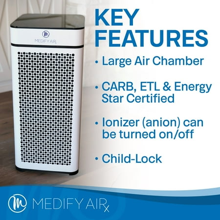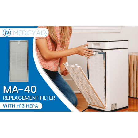 Medify Air MA 40 H13 True HEPA Room Air Purifier for 800 sq. ft.Features H13 HEPA filter which is a higher grade of HEPAThis HEPA air purifier covers 860 square feet with two air exchanges per hourFeatures a built-in particle sensor with visible air quality indicator by colorComes with Stalinite touch panel operations, 4 fan speeds, 8 hour timer, night mode and child lockFor best results, change air filter at least once per season or more often depending on air quality and use