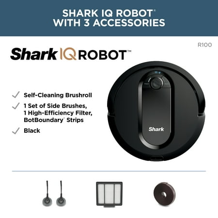 Shark IQ Robot Vacuum R100, Wi-Fi Connected, Home Mapping (RV1000):INCREDIBLE SUCTION: Deep-cleaning power to take on large debris, small debris, and pet hair on carpets and floorsNO HAIR WRAP: Self-cleaning brushroll pulls in all types of hair on all surfaces without letting it wrap on the brushrollPHONE OR VOICE COMMAND: Schedule whole-home cleanings or target specific rooms or areas to clean right now with the SharkClean app or voice control with Amazon Alexa or Google AssistantTOTAL HOME MAPPING + ROOM SELECT: Maps your home and lets you choose which rooms to clean right nowROW-BY-ROW CLEANING: Methodically cleans row by row and then navigates room to room for complete home coverageRECHARGE AND RESUME: The Shark IQ Robot vacuum will return to the dock, recharge, and can pick up where it left offPERFECT FOR PETS: Designed for homes with pets, this automatic vacuum features a XL dust cup, a self-cleaning brushroll, and a high-efficiency filter to capture dust, dander, and pet allergensHIGH-EFFICIENCY FILTER: Captures and traps 99% of dust, dander, and pet allergens*. (*down to 1 micron)