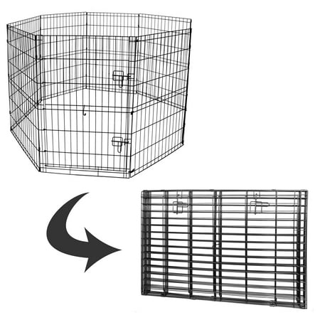 Vibrant Life Indoor & Outdoor Pet Exercise Play Pen, 36″H:Heavy-duty, non-corrosive steel frameSlide bolt latches to preserve your dog secureCan be configured into four shapes: four’ rectangular, five’octagon, 6′ 2′ rectangle, 16′ divider fenceSimilar to a crate however permits for workout and playFolds flat for easy transport and storageQuick and smooth to assembleProvides clean visibility and ventilation